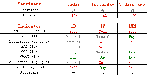 今日,多头头寸维持在昨日的53%不变,卖单从58%升至59%。