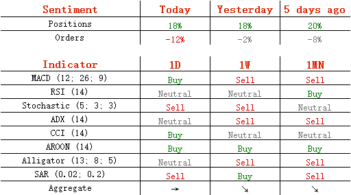 今日,多头头寸维持在周五的59%不变,卖单却从51%升至56%。