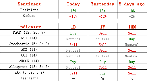 今日,多头头寸减少1%,至58%;卖单增加1%,至57%。