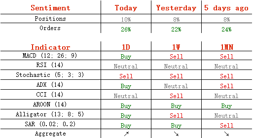 昨日,美元走强,但黄金先跌后涨,收了带有长下影线的小阴线。目前,短期走势震荡偏多,但鉴于日线MACD快线及慢线持平,因此不排除继续区间震荡的可能性。今日,上方关注1240.00阻力位,下方关注1230.00支撑位。如果向上突破1240.00,金价将测试本月高点1244.71主要阻力位;但如若跌破1230.00,黄金将试探布林带中轨主要支撑位。