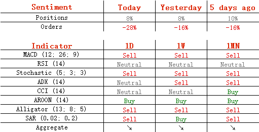 今日,多头头寸维持在昨日的54%不变,而卖单却从58%升至64%。