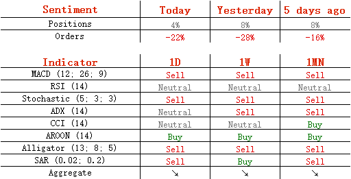 今日,多头头寸减少2%,至52%;卖单减少了3%,至61%。