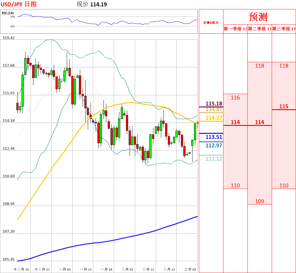 美元/日元突破布林带中轨 - 技术分析 - Dukascopy Bank