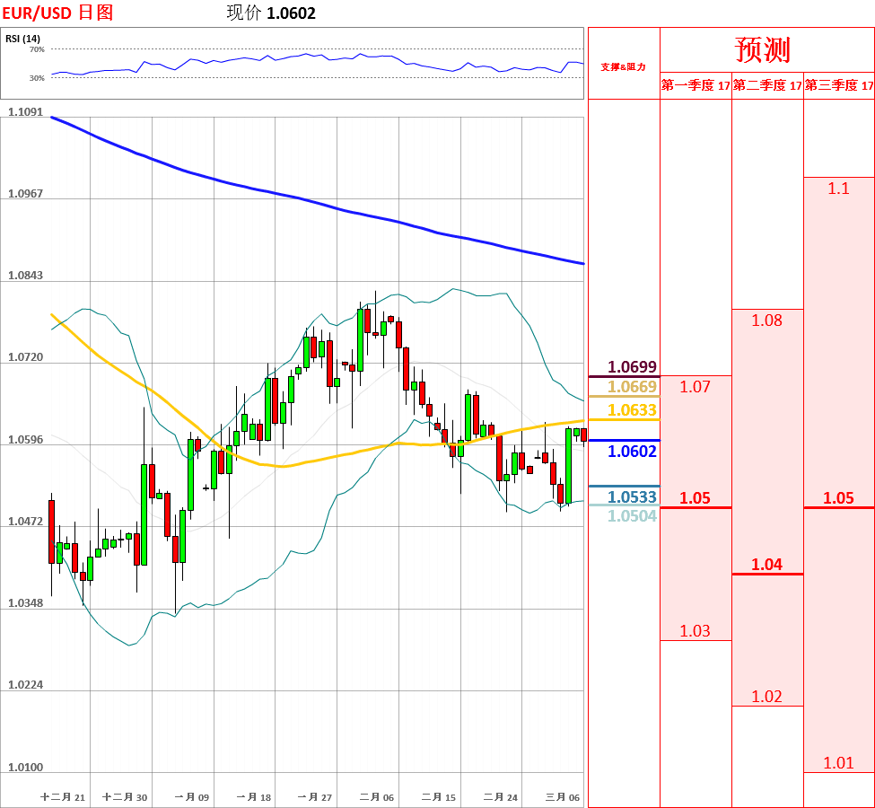 "全面考虑,汇率维持在一个重要区域震荡。我指的是3月低点1.0460和12月低点1.0524。"-