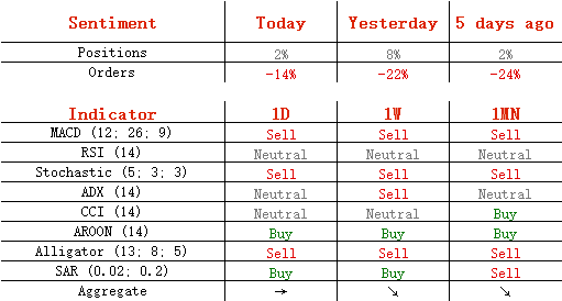 今日,多头头寸减少3%,至51%;卖单减少了4%,至57%。
