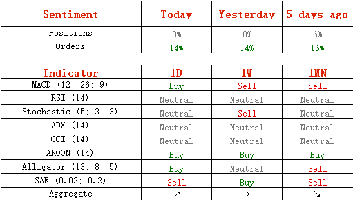 今日,多头头寸和买单均维持在周五的54%和57%不变。