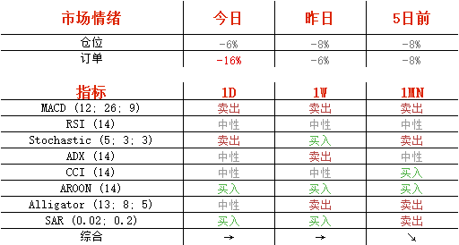 今日,空头头寸减少1%,至53%;但卖单却增加了5%,至58%。