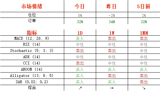 空头头寸从昨日的51%降至50%,买单从67%降至66%。