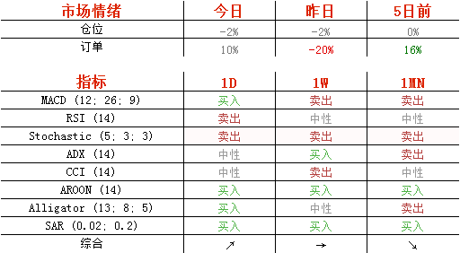 今日,空头头寸维持在昨日的51%不变,但卖单却从60%降至45%。