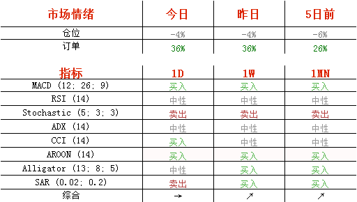 今日,空头头寸和买单均维持在昨日的52%和68%不变。