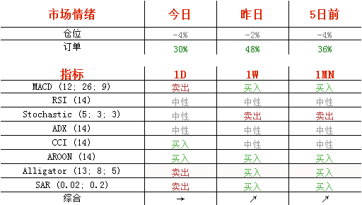 今日,空头头寸增加1%,至52%;买单减少了9%,至65%。
