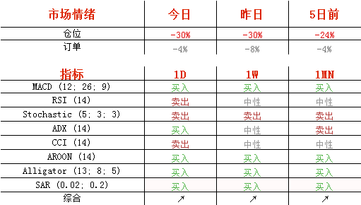 今日,空头头寸维持在昨日的65%不变,卖单从54%降至52%。