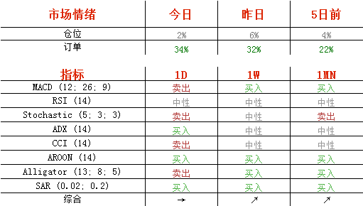 多头头寸从昨日的53%降至51%,买单从66%升至67%。