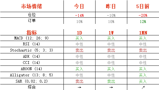 今日,空头头寸从昨日的55%升至57%,买单维持在55%不变。