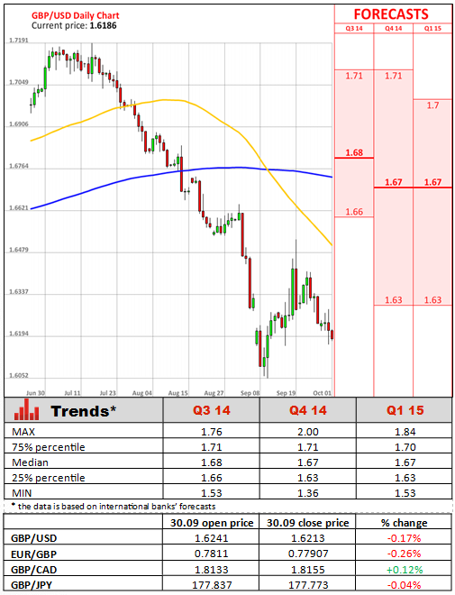 According to Nationwide Building Society, property prices in the United Kingdom registered the first decline since May 2013, as they slipped 0.2% in September, calculated month-on-month. Therefore, the average house price in the country reached 188,374 pounds. On a yearly basis, the indicator added 9.4%, down from 11% growth back in August. Economists confirm the period of softening housing market in Britain, taking into account recent actions of the Bank of England in order to avoid bubble. Last week, data from Hometrack Ltd showed the first decrease of property prices in London in more than two years. At the same time, positive development on the labour market and low interest rates are likely to support demand for property in the foreseeable future.