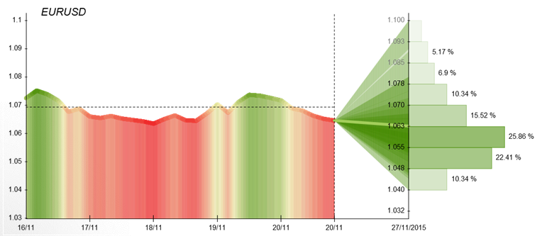 This week sentiment deteriorated further, as only 35% of participants in our weekly quiz expect the Euro to rebound. In course of the working week, analysts are waiting for a big portion of fundamental data. It includes Wednesday's data on US durable goods orders, personal spending, new homes sales and consumer sentiment and a report on initial jobless claims, which will be released one day earlier than usual, because of the Thanksgiving holiday. As Jignesh suggests, "Last week reaffirmed the markets that the ECB will continue further stimulus if required and the FED is ready for lift off.  This once again strengthens the point of divergence between the monetary policies of both economies."