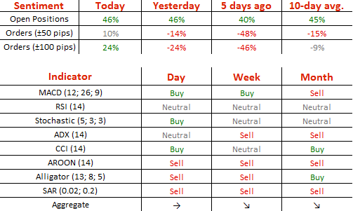Bullish traders' sentiment remains unchanged at 73%. At the same time, the number of orders to acquire the US Dollar added 24 percentage points. The orders now take up 62% of the market.