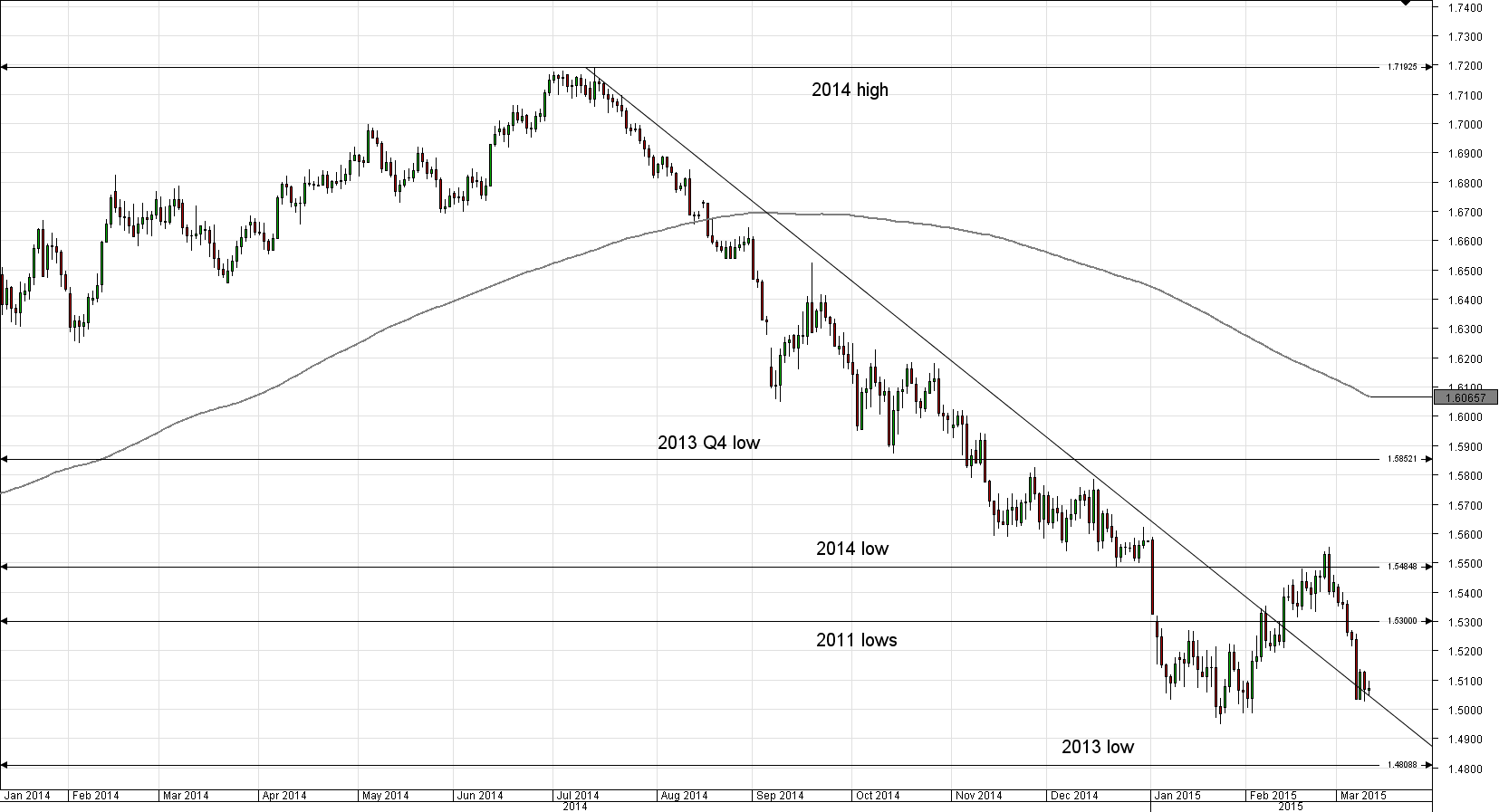 The GBP/USD pair has been sliding down since the end of February, and during that time the Sterling repeatedly failed to breach the resistance trend-line. Today the Pound was close to success, but slumped back down after the poor UK Manufacturing Production data release earlier. The British currency is likely to retain negative bias at least until it reaches the daily S1.