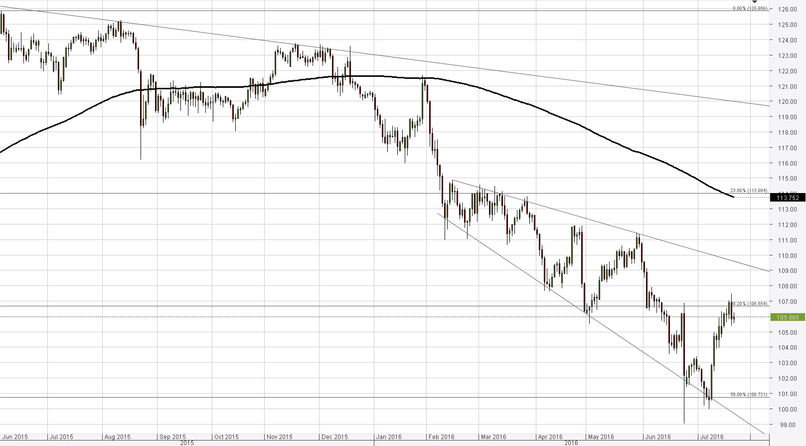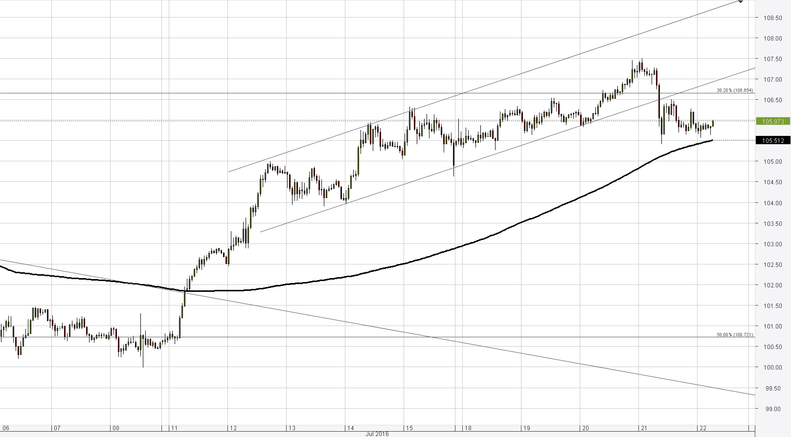 • The 55-day SMA and the 38.20% Fibo around 106.45 represent immediate resistance