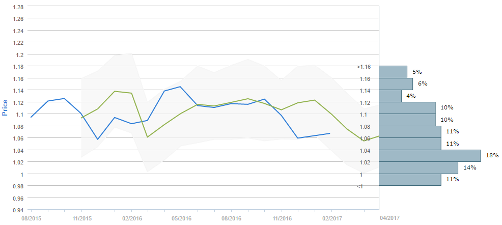 Average forecast says EUR/USD will trade around 1.06 in April