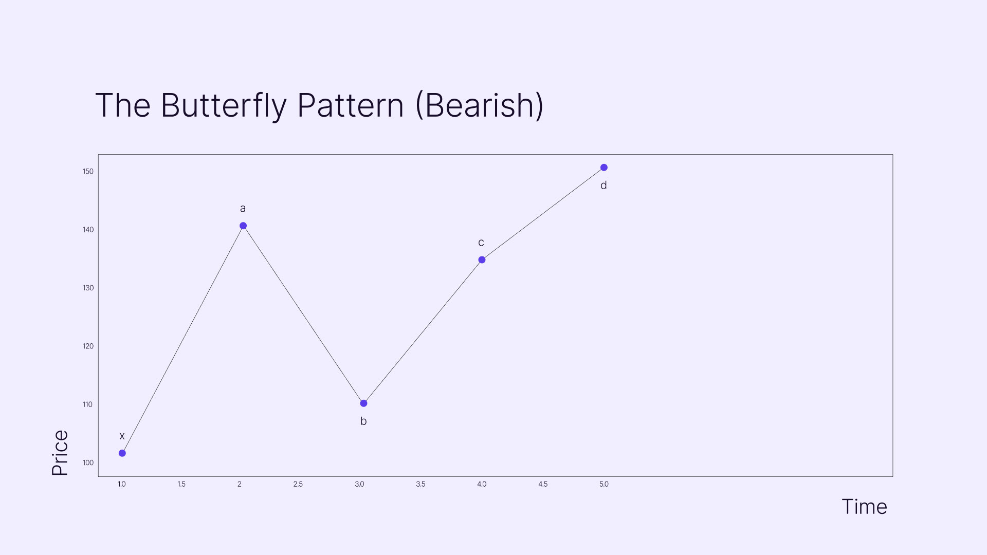 In a valid butterfly, point B retraces 78.6% of XA, while point D extends to the 127.2% or 161.8% level of XA. The CD leg should be an extension of 161.8% to 224% of BC. This pattern often signals the end of aggressive trend extensions and can precede sharp reversals.