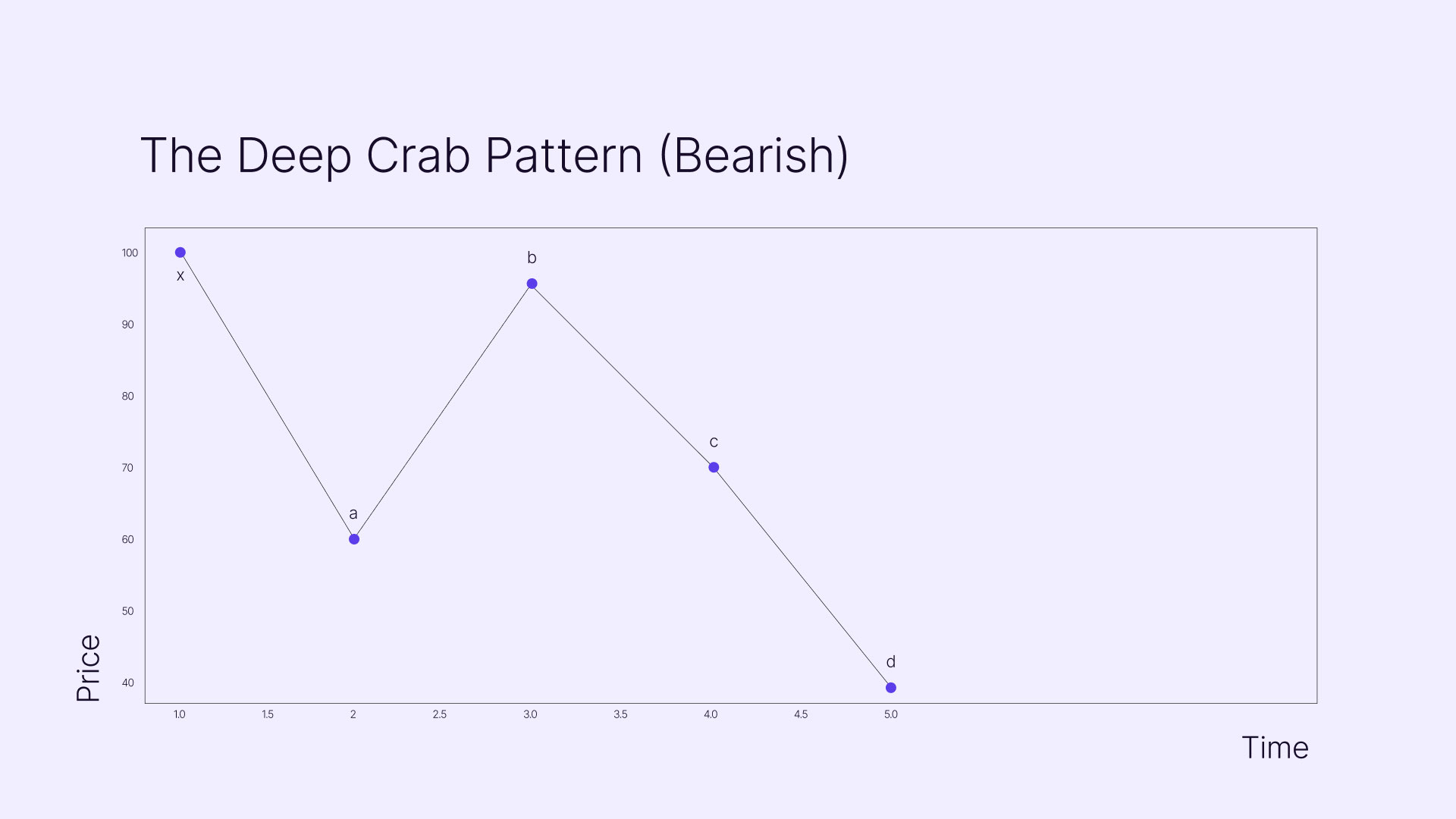 The deep crab is a variation that pushes retracement levels even further. The key difference lies in point B, which retraces 88.6% of the XA leg - much deeper than the standard crab.