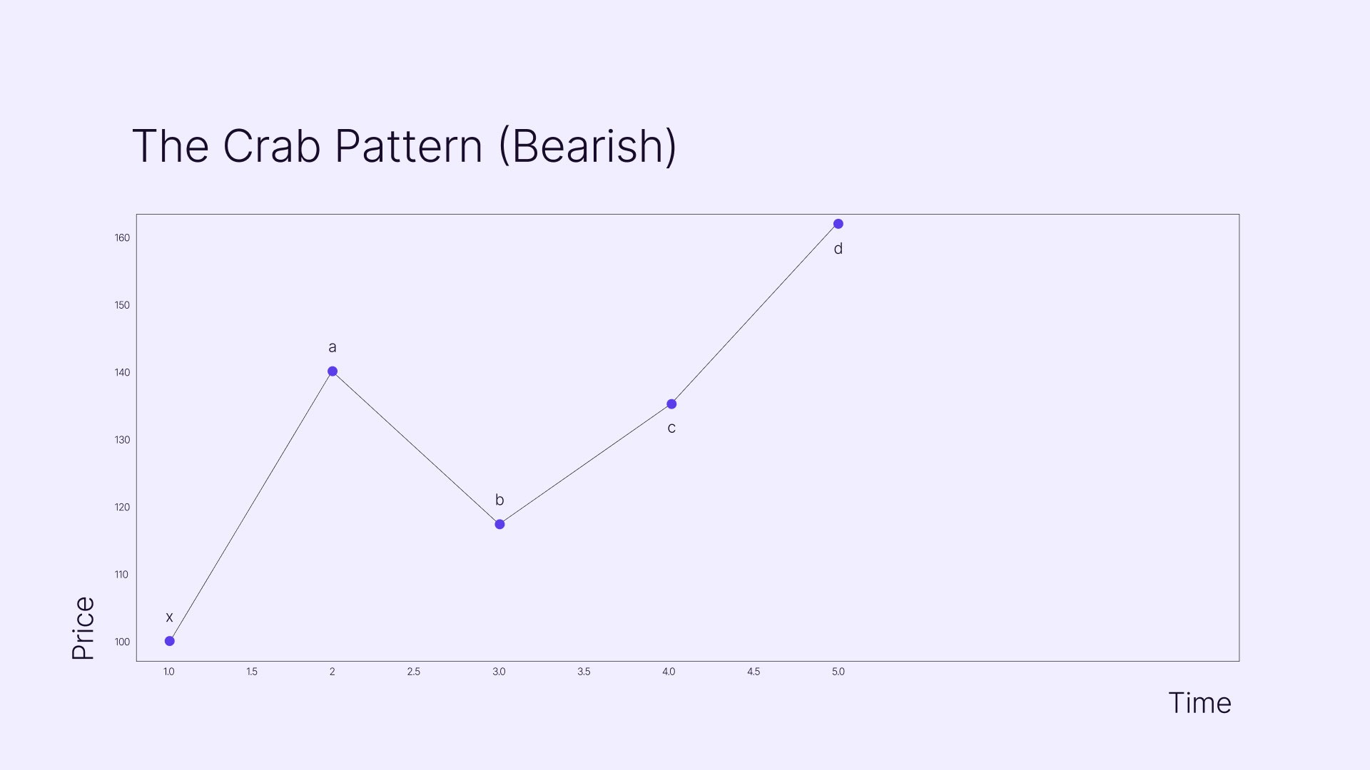 The crab pattern, another Scott Carney creation, is known for its extreme precision and high reward-to-risk potential. Like the butterfly, it's an extension pattern where D moves beyond X.