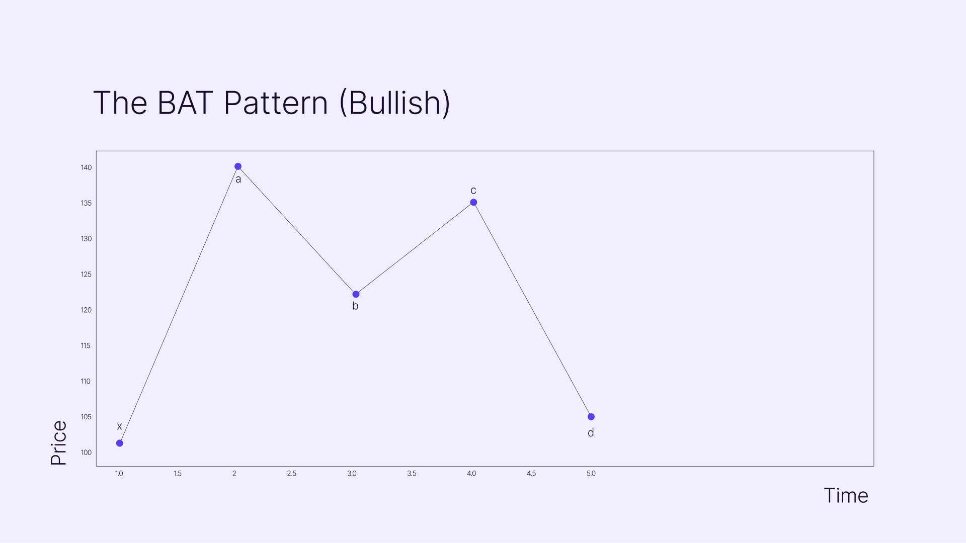 The BAT pattern, discovered by Scott Carney in 2001, resembles the winged creature it's named after when drawn on a chart. This five-point pattern starts at X and moves through A, B, C, and finally completes at D.