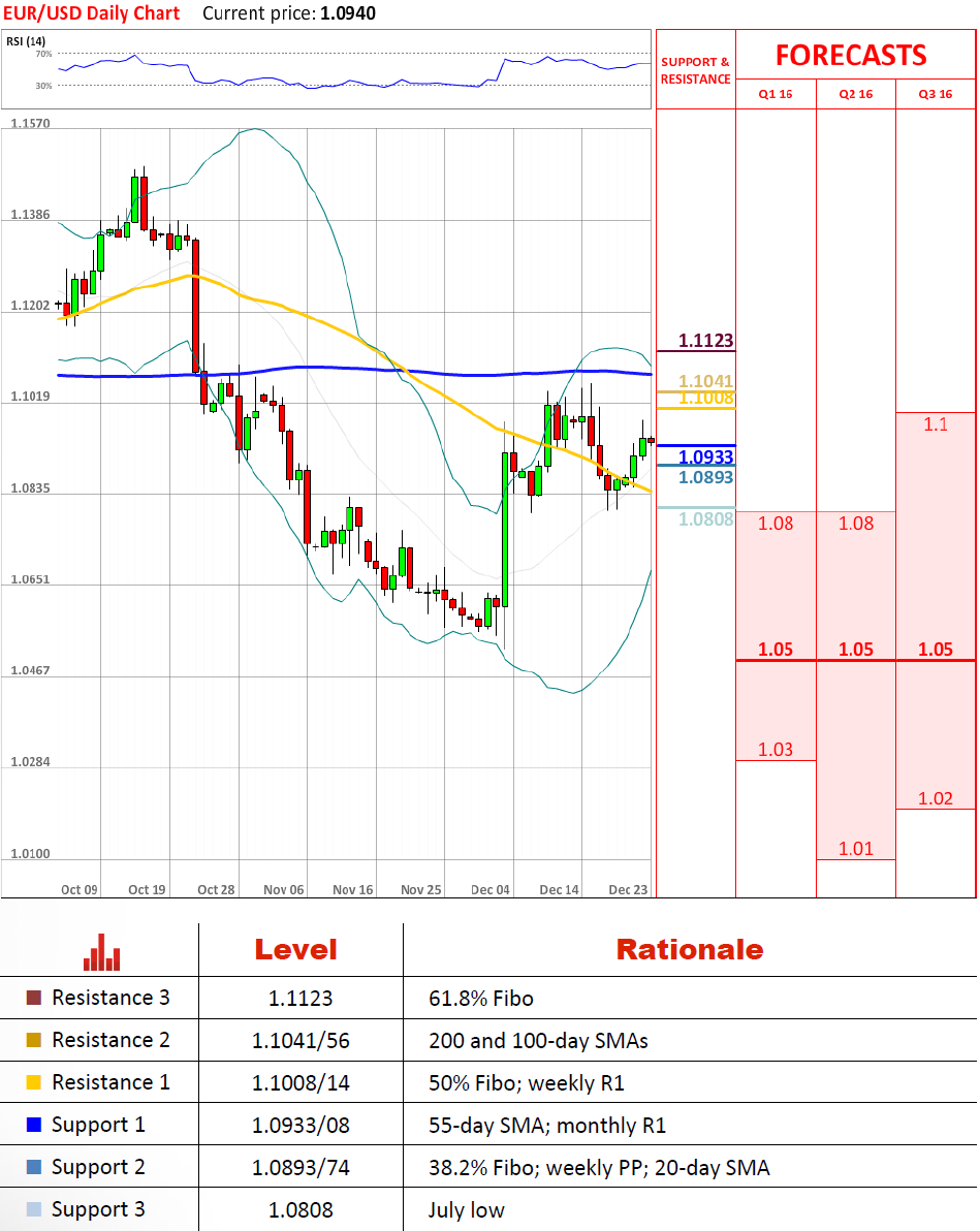 Another bullish trading session was registered by the most traded FX cross on Tuesday. Daily gains amounted to 40 pips, but it was enough to violate the 55-day SMA at 1.0929. Now the nearest resistance is represented by the 50% Fibonacci retracement of an Oct-Nov downtrend and weekly R1 at 1.1009/14. However, even important supply is placed at 1.1041/56, namely the 200 and 100-day SMAs. One-day technical indicators are still projecting a positive trend for EUR/USD. Meantime, trading volume fell to the lowest level since Nov 30, meaning market volatility is likely to wane.