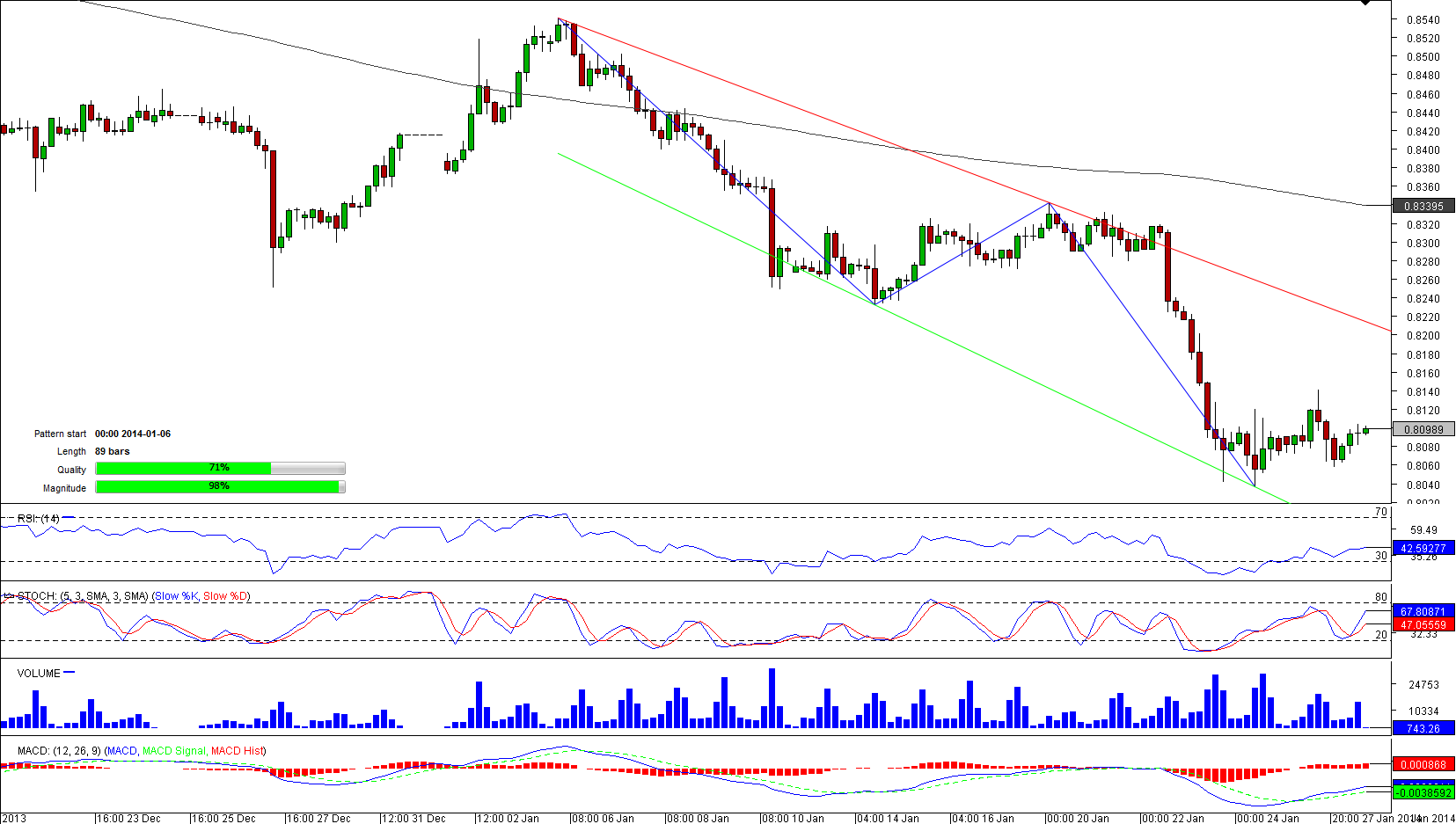 A 194-bar long channel up was formed by GBP/NZD on January 14 and so far the pair has been perfectly moving in pattern's boundaries. On Tuesday the pair was strongly bearish, following a report from the ONS that showed U.K. GDP data, the pair moved closer to the lower boundary, and, according to technical indicators, it will be able to