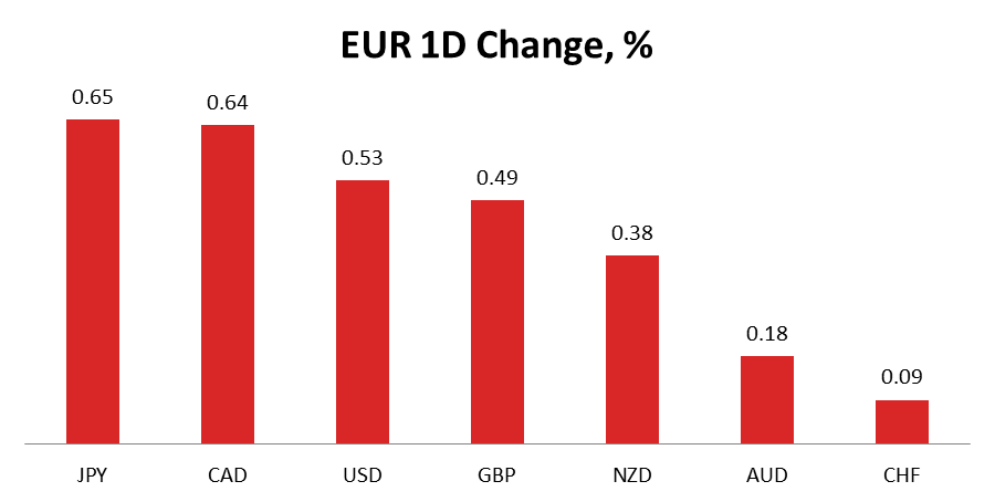 Meanwhile, the share of bullish positions at OANDA amounts to 42.27% at the moment, while SAXO Bank market participants are even more pessimistic with respect to the common currency, as their portion of the longs takes up only 33% of all open trades on Monday.