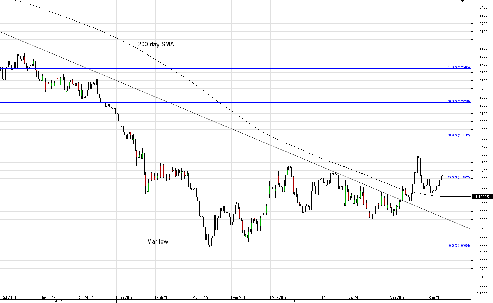 EUR/USD erased one additional resistance on Friday, by penetrating the 23.6% Fibonacci retracement of the 2014-15 downtrend. Therefore, the pair was increasing in value every day during last week. However, it is highly likely that the cross will trade sideways until Thursday, when the Fed is due to make a rate decision. Moreover, both bulls and bears are estimated to feel pressure from the upside (1.1430 area) and downside (below 1.13), respectively. Meanwhile, daily technical indicators are now assuming the Euro is overbought and it should be sold versus the US Dollar soon.Daily chart