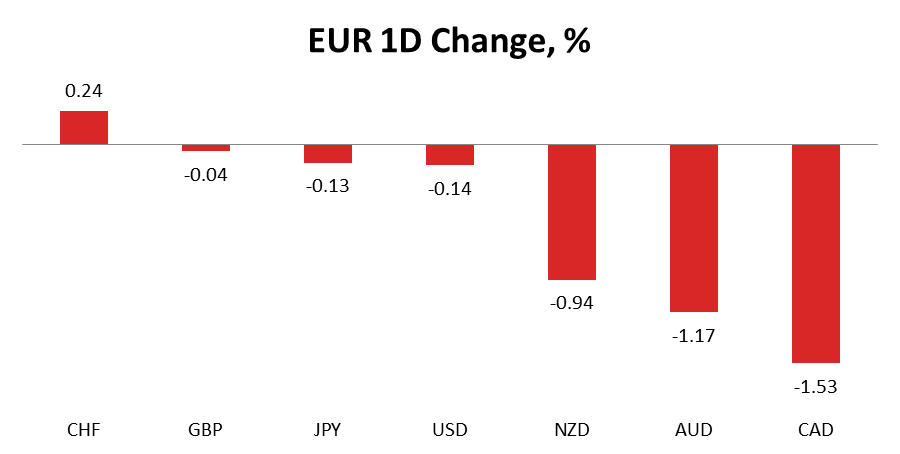Being that oil prices booked daily gains of more than 6% on Wednesday, commodity-linked currencies inched much higher against the Euro. The Canadian Dollar added 1.53%, while both the Aussie and Kiwi posted an increase of 1.17% and 0.94%, respectively. Today's report, however, does not include quite disappointing numbers on Australian labour market and weaker than forecasted Chinese inflation that have been released earlier on Thursday. The only currency pair of the Euro to surge was EUR/CHF, which was up by 0.24% amid growing risk-on sentiment across global equity markets. Alongside, dovish minutes from the Federal Reserve and soft comments made by St.Louis Fed President James Bullard used to put little pressure on the Dollar. In fact, the Greenback has even jumped by 0.14% versus the common currency of the Euro area.