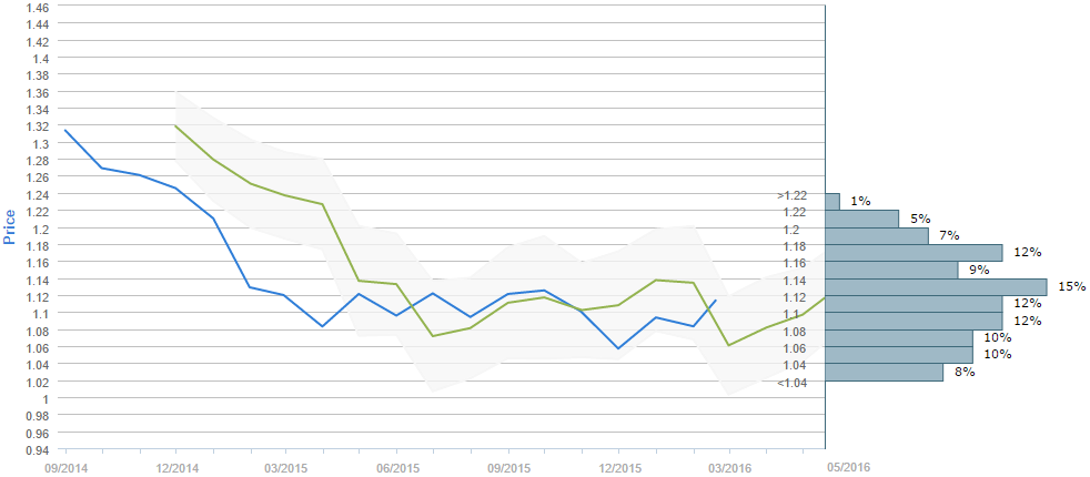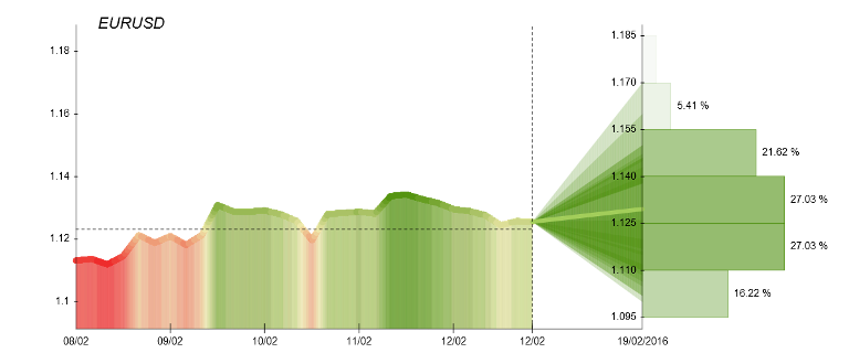 Even though around three our of four Dukascopy Community members had expected the Euro to grow at the expense of the Dollar last week, during a new five-day period the bets on Euro's climb fell down to 64%. Nonetheless, it seems to remain as a clear bullish signal from the traders. The average weekly estimate for Friday, February 19, is 1.13. However, the range of expectations is largely broad and more than a half of all projections is placed with the wide range of 1.11-1.14.