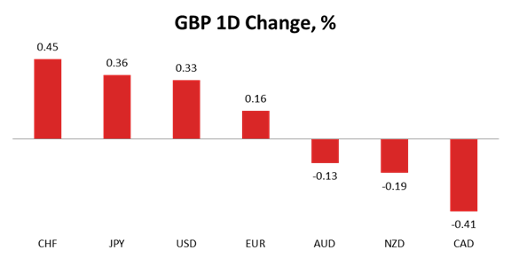 The British Pound experienced mixed performance yesterday, as it not only appreciated against some major peers, but also declined against others. Largest gains of 0.45%, 0.36% and 0.33% were registered versus the Swissie, the Yen and the Greenback, respectively. At the same time, the most substantial loss of 0.41% was detected against the Canadian Dollar.