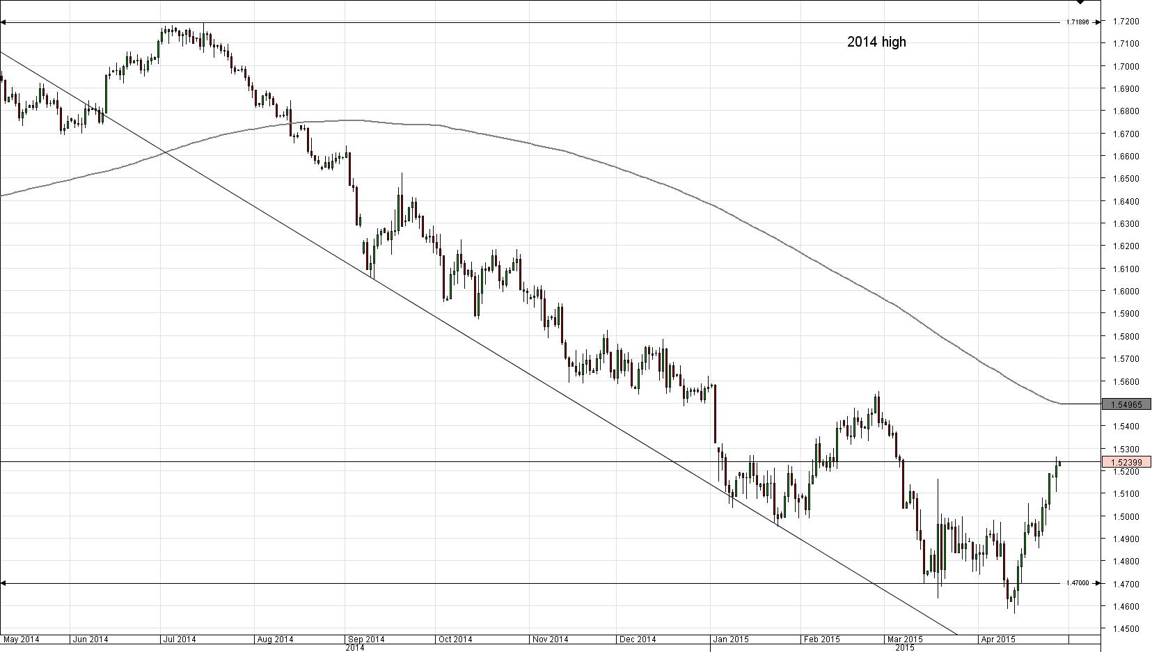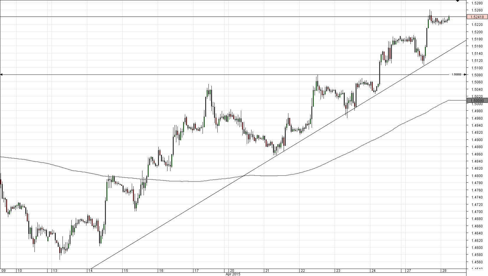 Official data later today is expected to show British economic growth slowed in the first three months of this year. The median market forecast stands at 0.5%, while the last quarter of 2014 the UK economy expanded at the 0.6% growth rate, a revision from 0.5%.