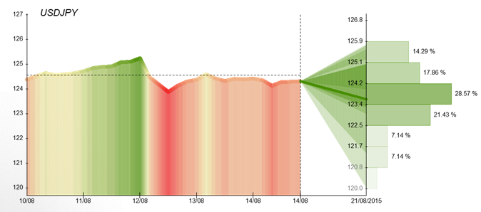 The August 10-14 week has brought no surprises in terms of development of the USD/JPY currency pair, as it stayed largely unchanged during those days, despite some minor movements on Wednesday and Friday, when the pair dropped as low as down to weekly S1 at 124.01. A stable majority of Dukascopy respondents expected exactly such a development to take place last week, while the sentiment was changed to bearish mood.