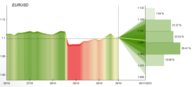 The EUR/USD currency pair was rather volatile during the October 26-30 trading week, even though it managed to open and close at almost the same levels. The pair was noticeably influenced by the news from both continents. The US economic reports were mixed while the data from the Euro zone were stronger than expected.US economic growth slowed to a 1.5% annual rate in the third quarter, held back by a large inventory drag that took 1.44 percentage points off the GDP. Surprisingly, trade was a neutral factor, as exports and imports largely offset one another. Meanwhile, consumer spending grew at a 3.2% rate, down from 3.6% in the second quarter. However, US consumer spending rose just 0.1% in September after climbing 0.3% and 0.4% in July and August, while the September's increase was the smallest since March. Meanwhile, the Euro zone economic confidence rose unexpectedly to 105.9 in October, above economists' expectations of a drop to 105.1, posting the fourth straight monthly increase. Nevertheless, the Dollar eased gains on Thursday, but remained close to two-and-a-half month highs after the Federal Reserve indicated that it may raise US interest rates at its next meeting in December.