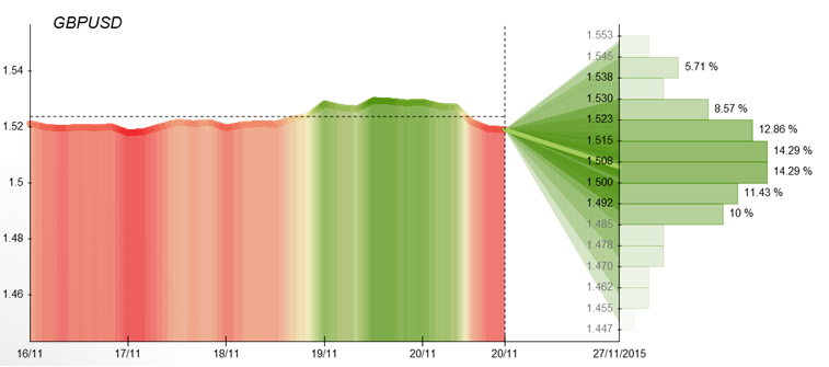 This week sentiment among Dukascopy traders has significantly worsened, as now 70% of traders predict the Pound to lose value, while last week this scenario was suggested by 50% of Community members. Alongside, the average forecast for the end of the week is placed around the 1.508 level. Meanwhile, on Wednesday, the US is going to announce reports on durable goods orders, personal spending, new homes sales and consumer sentiment as well as a report on initial jobless claims, which will be published a day earlier due to the Thanksgiving holiday. Also, traders can pay attention to the Britain's revised data on third quarter economic growth, which is going to be released on Friday.