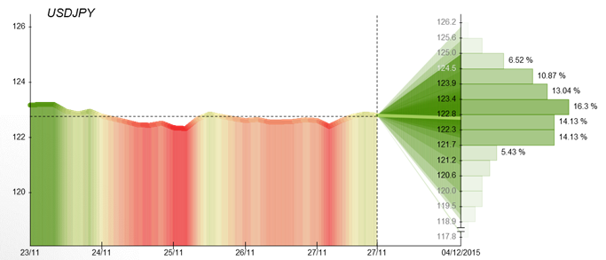 The USD/JPY followed the tendency of its counterparts. In course of the previous week, the pair was booking some small losses and was trading around 122.35. Moreover, during the Asian session, the Japan Index of Business Conditions for September improved from 101.4 to 101.6, while Japanese manufacturing PMI for November slightly improved from 52.4 points to 52.8 points. Moreover, the Bank of Japan minutes from the last meeting were published overnight, which showed that the BoJ board members had moved the timing for reaching its 2% price growth target to the second half of fiscal 2016 due to weak oil prices, a global economic slowdown and other macroeconomic factors. Eventually, by the end of the week, the USD/JPY pair remained largely supported by positive US data outlook, with the Greenback benefitting the most during the morning hours of the North American trading session.