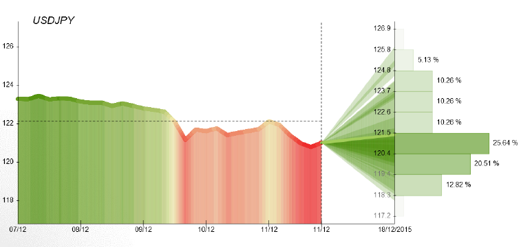 This week's overall sentiment for the USD/JPY pair changed back to distribution seen two weeks before, as 62.5% of all traders are now supporting the bearish case for the pair. Slightly more than 25% of traders expect the pair to close above the 121 level towards the end of present working week. This Monday, Tankan manufacturing outlook stood at plus 12 in December, unchanged from three months ago. Despite that, the non-manufacturing gauge went up to 16 points. Concerning other announcements from Japan, on Friday, the Bank of Japan is to publish the minutes of its latest monetary policy meeting, giving investors insight into how officials view the economy and their policy options.