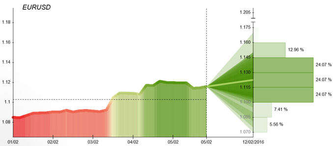The odds are growing in favour of the EUR/USD pair's continuous advance this week. Now almost three out of four Community members see the cross higher by Friday, while the mean projection breaches the round level of 1.12. Adding to that, more than 72% of all estimates are falling into the range between 1.10 and 1.1450, meaning there is a high probability of uplifted volatility and wide-range trading. This period is awaited to bring much fewer events than last week. Fed Chair Janet Yellen will testify before both houses of the US Congress on Wednesday and Thursday. Markets are willing to know, whether the March hike is going to be rule out completely, or Ms. Yellen will leave it as an open issue.