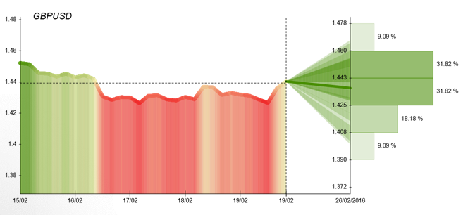 The second very popular currency pair among traders, the Cable, showed a pure negative performance during the previous week, despite strong bullish outlook of Dukascopy members. During the first day of the observed period, the GBP/USD pair traded with no major changes, however, the fear of growing UK inflation pushed the pair down from 1.45 to 1.43. Earlier in the day, CPI inflation in the UK dropped from 0.1% to -0.8% month-on-month in the preceding month, while the yearly gauge increased to 0.3% from 0.2% . Moreover, according to the Office for National Statistics the core measure decreased to 1.2% from 1.4% in December. Moreover, in the middle of the week, on Thursday, European leaders gathered in Brussels on to begin final negotiations on a deal to help prevent the United Kingdom from exiting the European Union. Prime Minister David Cameron is expected to call a referendum on whether the UK should remain in or leave the EU. It is widely expected that the referendum will take place on 23 June. On Friday, the British Cable pared its earlier losses against the Greenback on Friday afternoon amid a busy trading session filled with strongly upbeat UK retail sales. Retail sales rose a robust 2.3% in January versus December, nearly tripling expectations for a 0.8% rise. The rise was the 33rd consecutive month of retail sales growth, the longest period of growth since the 2008 financial crisis.