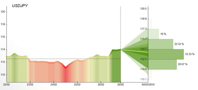 This week, traders are expecting pure negative development of the pair, opening short position more often than long ones. The pair is likely to be driven by fundamental data from the United States, and the fact the greenback is bought in 64% of all cases across the board, is bolstering the case the pair can drop below 114 level.