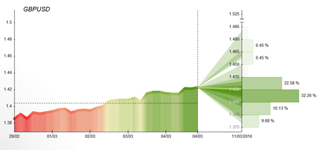 During February 29 – March 4 time period the Dukascopy Community members assume this currency pair to increase further, since more than 64% of all votes are bullish. As predicted by traders, the GBP/USD may close around the 1.42 level this Friday. Concerning important news from Britain, on Tuesday, the Bank of England Governor Mark Carney is to testify on Britain's European Union membership before the Parliamentary Committee in London. While the next day, the UK is going to report on industrial and manufacturing production. Eventually on Friday, the UK is going to release data on the trade balance.