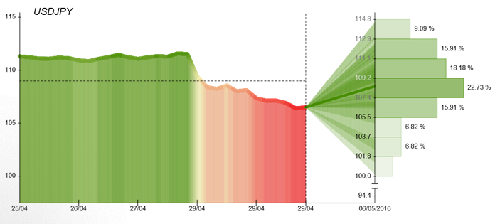 In case of the previous week, the pair experienced purely bullish tendency almost during the whole week despite the disappointing US data. The US new home sales and the Dallas Fed manufacturing index undershooting expectations, adding to the downward Greenback pressure. However, in the middle of the week, the pair experienced change in the tendency, since the Japanese yen added more gains on Thursday after Bank of Japan Governor Haruhiko Kuroda dashed expectations for more stimulus, pushing pair up for the 300 pips. The Bank's decision do not provide additional stimulus to the struggling Japanese economy has prompted some investors and traders to bet that policy makers are out of bullets, clearing the path for further gains in the yen. The BoJ will leave the annual pace of expansion of the monetary base unchanged at 80 trillion yen and a 0.1% negative interest rate. The Japanese yen extended its post-BoJ gains and hit fresh 18-month high on Friday due to the weak US data, while Japanese traders are taking day off celebrating the 'Showa Day'.