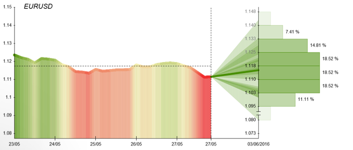 In course of the previous trading week, the EUR/USD currency pair continued to depreciate moderately, entering the negative trend. The single European currency was mainly affected by Federal Reserve announcement that openly acknowledged a potential rate hike at the upcoming Fed meeting in June. Looking at the bigger picture, during the previous trading week the cross was seen near the one-month low of soaring around 1.1178. On Thursday, the Euro tried to make some attempts, in order to regain some value, since dollar was negatively affected by US durable goods orders data, which showed firm advance by 3.4% in April, from an upwardly revised 1.9% booked in March. In addition, 268,000 people asked for unemployment benefits for the first time in the week that ended on May 21. Eventually, on Friday, the was no able to defend its positions and went down to its ten-week as the prospects of a summer rate hike in the US supported the greenback.