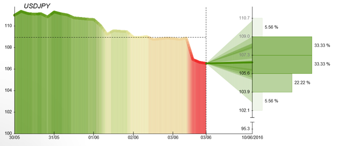 Participants of the Dukascopy weekly quiz were largely bullish on the USD/JPY pair, as 63.6% of all votes were positive; however, the average prediction for Friday stayed just above the 110.1 mark. Currently, Dukascopy traders became much more bearish on their future view of pair's development, being that 66.7% of respondents are now waiting the US Dollar continues to fall in value. The median forecast for Friday of this week slipped to 106.70 from the current trading level. Among influential events, from the American side, Michigan consumer expectations and the Federal Budget for May will be published on Friday.