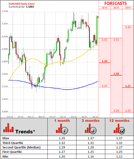 The European Central Bank held its main interest rate at a record low of 0.75% yesterday. European Central Bank President Mario Draghi also mentioned that the region's economy will start gaining momentum and slowly recover this year, due to the stabilisation of the bond markets after three years of turmoil. Last month the ECB warned that the economy would even weaken in 2013, and the figures, released on Tuesday, showed that the unemployment rate in the Eurozone soared to a fresh high of 11.8%. The Eurozone economy contracted in the second and third quarters by 0.2% and 0.1%, respectively, and fell into a technical recession. Despite some positive signals from the ECB, the recovery remains fragile.