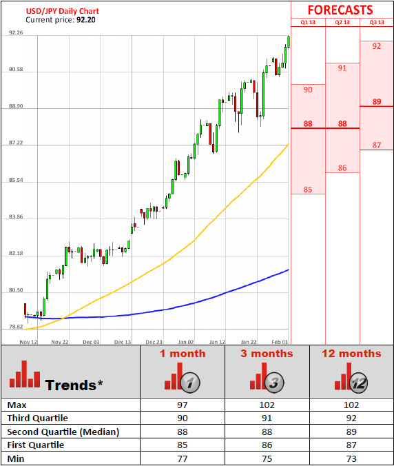 New applications for the unemployment benefits in the world's biggest economy rose more than expected during the last week, almost erasing a slide in the prior two weeks. The Labor Department said that the number of people who applied for U.S. jobless benefits surged 38,000 to a seasonally adjusted 368,000 in the week ended January 26, up from 330,000 a week earlier. The four-week moving average, which is a less volatile measure, stood at 352,000, from the previous week's revised average of 351,750. The number of people, who continue to receive unemployment aid, jumped 22,000 to 3.2 million in the week ended January 19. In the meantime, the employment cost index increased 0.5% after a 0.4% gain. A bigger-than-expected increase in the number of jobless claims and a unexpected contraction of the U.S. economy in the final quarter of 2012 are adding to concerns that the Fed will keep purchasing securities in order to boost economic recovery.